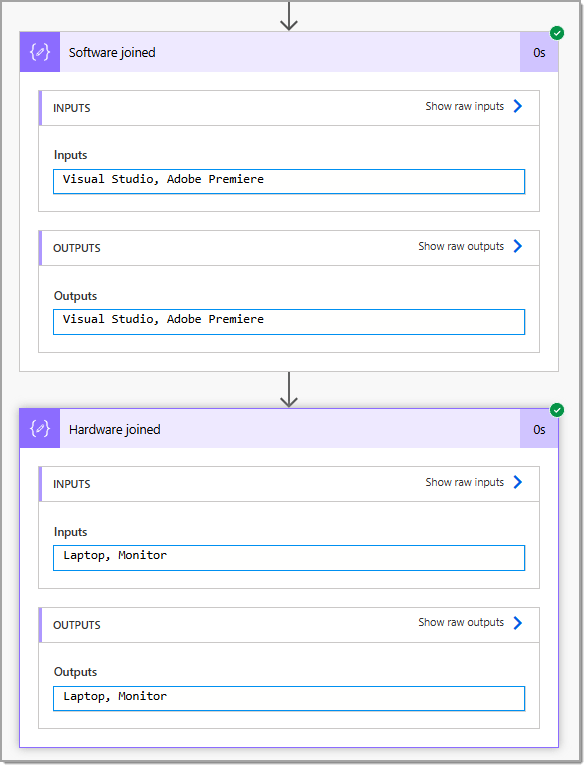 concat(outputs('Software_joined'), ', ', outputs('Hardware_joined'))